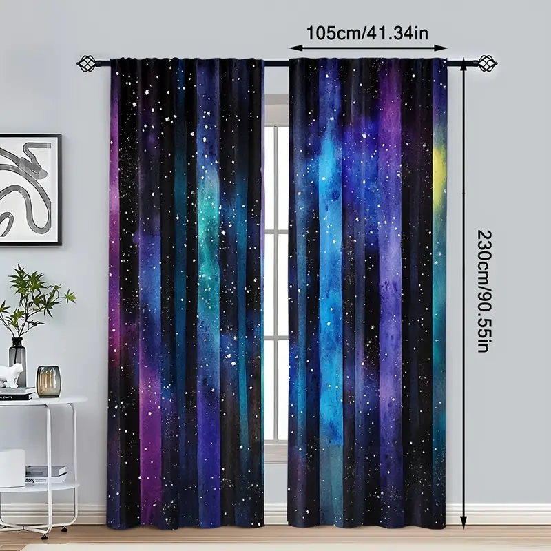 2pcs Stunning Purple Galaxy Curtains - Vibrant Starry Night Print, Rod Pocket Design for Easy Hanging, Perfect for Bedroom, Office, Kitchen, Living Room & Study Decor, Durable Polyester Fabric, Rustic Charm Aesthetic, Kitchen Curtains | Aesthetic Room Decor | Easy Install Curtains, Curtains for Living Room